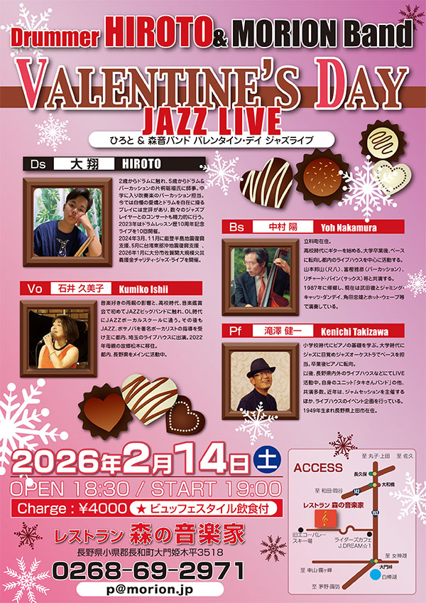 レストラン森の音楽家にて Open18:30 Start 19:00