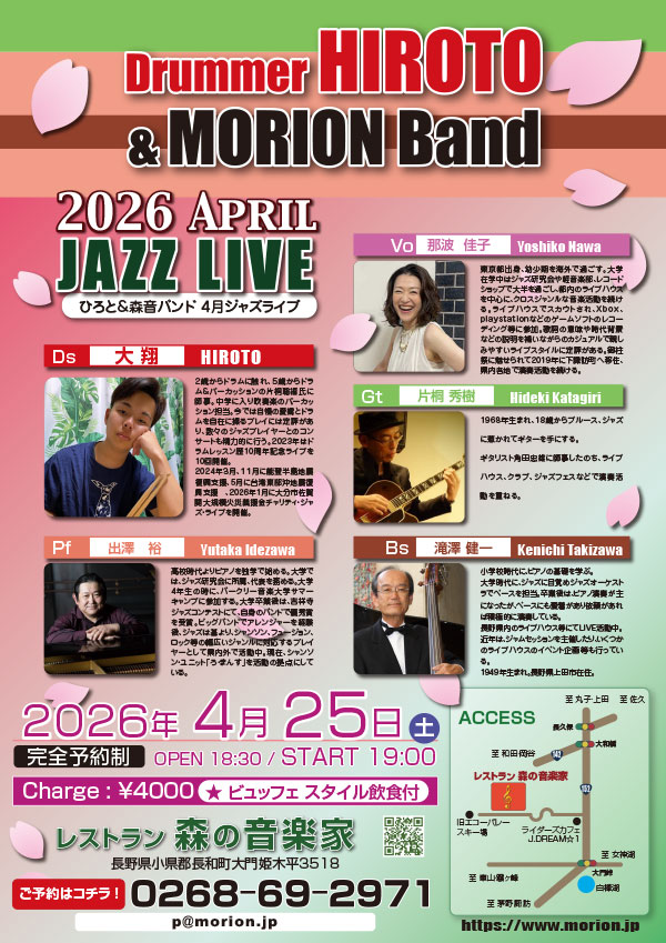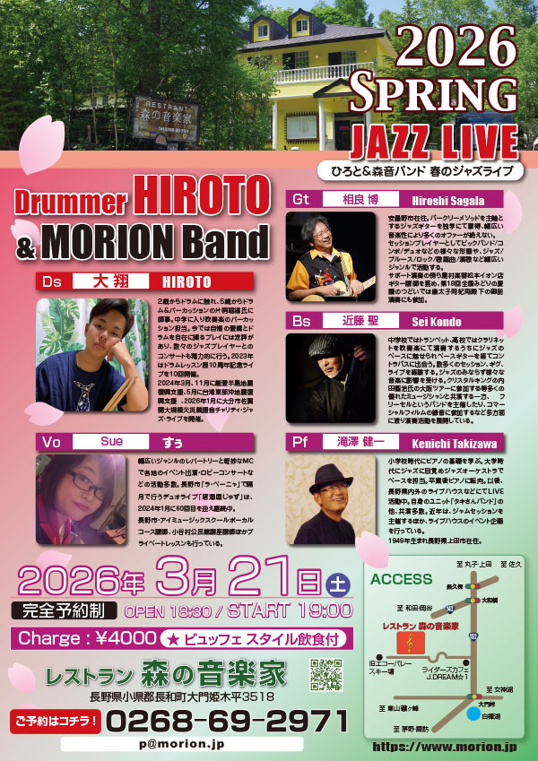 レストラン森の音楽家にて Open18:30 Start 19:00